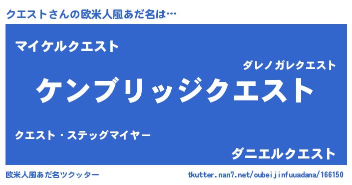 ヘコむあだ名 | 『クエにゅー』『クエスト(笑)』 |