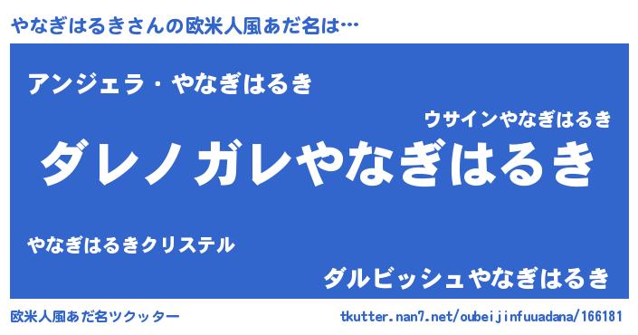 | ヘコむあだ名 | 『やなぎはるき(震え声)』『やなっぺ』 |
