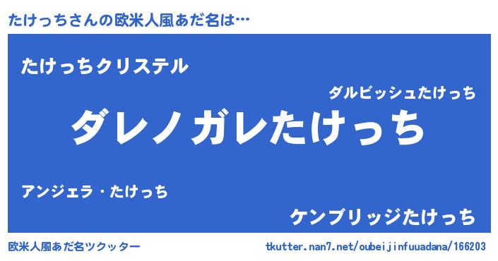 | 意味不明あだ名 | 『住所不定無職たけっち(91歳)』 |