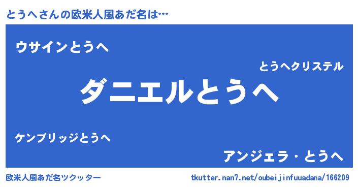 | ヘコむあだ名 | 『とうぷりん』『牛乳』『とうへ(笑)』 |