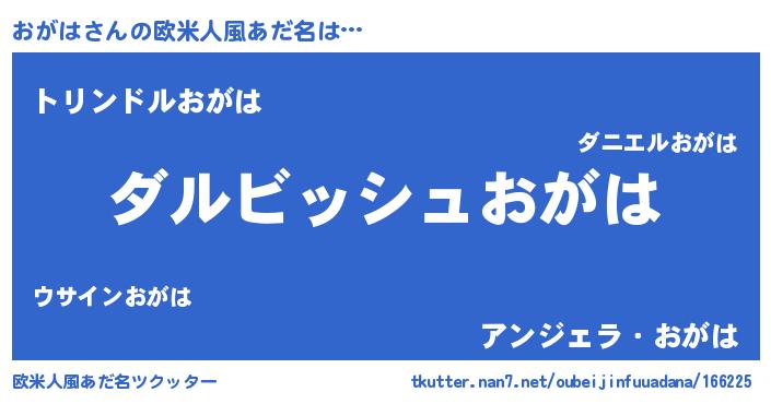 | 女子向けラノベタイトル風あだ名 | 『おがはの契約王妃』『おがは恋絵巻』 |