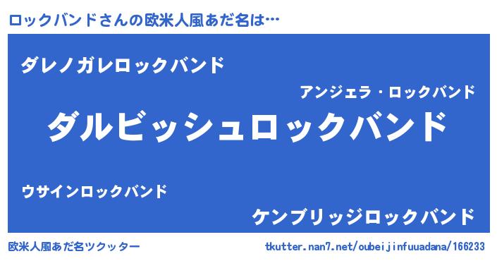 | 女子向けラノベタイトル風あだ名 | 『異世界で失敗しない100のロックバンド』 |