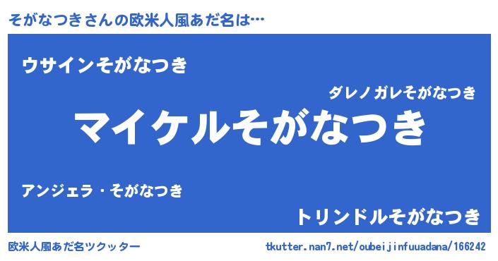 | 胡散臭い通販商品みたいなあだ名 | 『億万長者になれるブレスレット…その名も「そがなつき」』 |