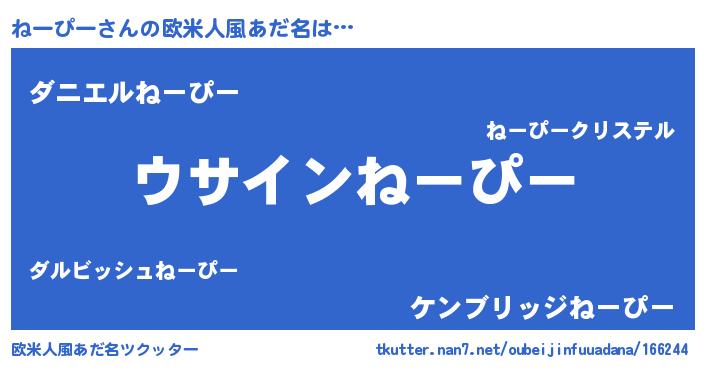 | ヒーロー風カッコイイあだ名 | 『銀牙騎士ネー』『正義の使者ねーぴー』 |