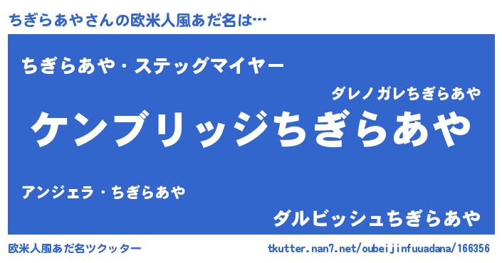 | 男性向けラノベタイトル風あだ名 | 『Re:ちぎらあやから始める異世界生活』 |