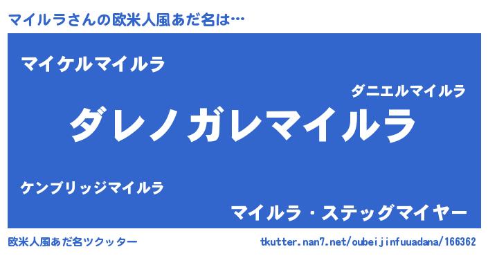 | 男性向けラノベタイトル風あだ名 | 『この素晴らしい世界にマイルラを!』 |