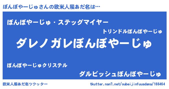 | 男性向けラノベタイトル風あだ名 | 『この素晴らしい世界にぼんぼやーじゅを!』 |