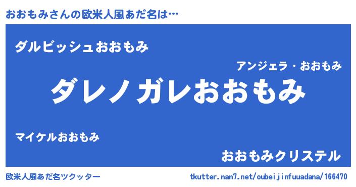 | 男性向けラノベタイトル風あだ名 | 『この素晴らしい世界におおもみを!』 |