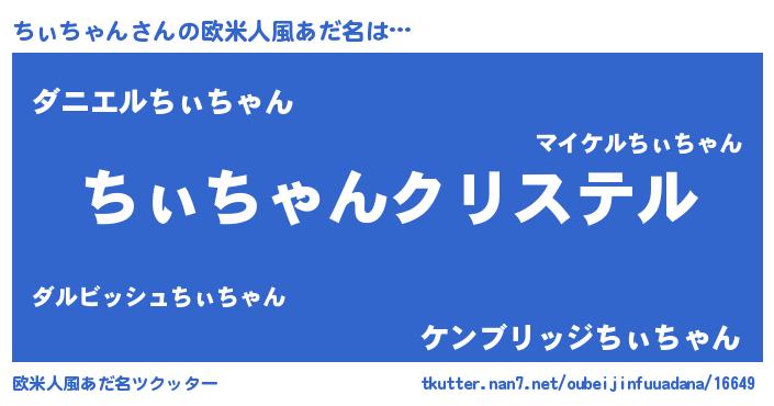 | 意味不明あだ名 | 『ちぃちゃんフォーエバー』 |