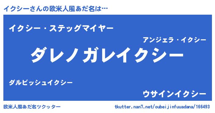 | 男性向けラノベタイトル風あだ名 | 『この素晴らしい世界にイクシーを!』 |