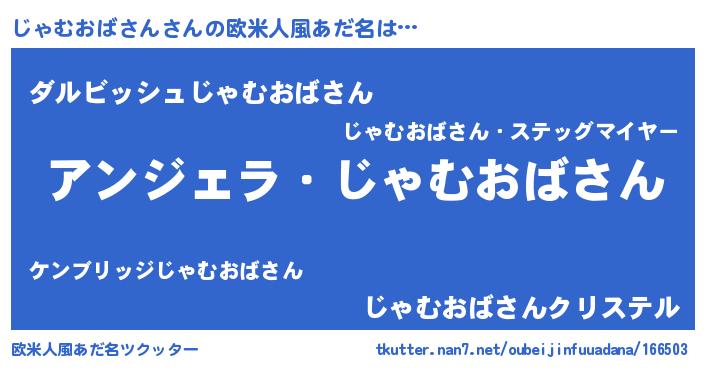 | 男性向けラノベタイトル風あだ名 | 『じゃむおばさんに滅ぼされるだけの簡単なお仕事です』 |