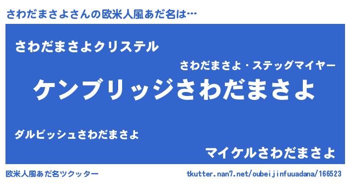 | 男性向けラノベタイトル風あだ名 | 『Re:さわだまさよから始める異世界生活』 |