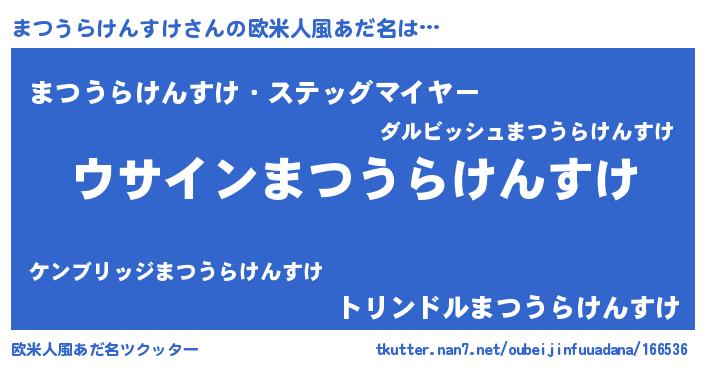 | 男性向けラノベタイトル風あだ名 | 『まつうらけんすけの嫁は女の子じゃないと思った?』 |