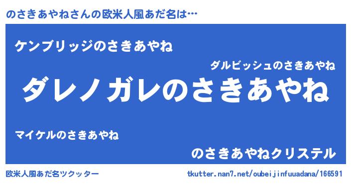 | 男性向けラノベタイトル風あだ名 | 『この素晴らしい世界にのさきあやねを!』 |