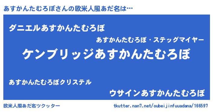 意味不明あだ名 | 『自称あすかんたむろぼ』 |