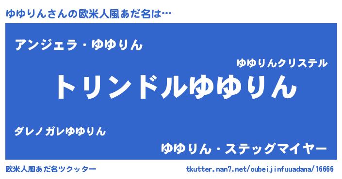 | 男性向けラノベタイトル風あだ名 | 『ゆゆりん~年齢イコール彼女いない歴の魔法使い~』 |