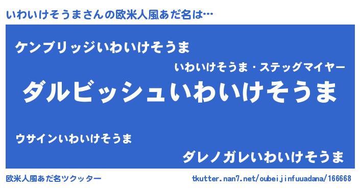 | 意味不明あだ名 | 『永久保存いわいけそうま』 |