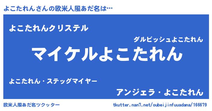 | 男性向けラノベタイトル風あだ名 | 『ヨコタレンアートオンライン』 |