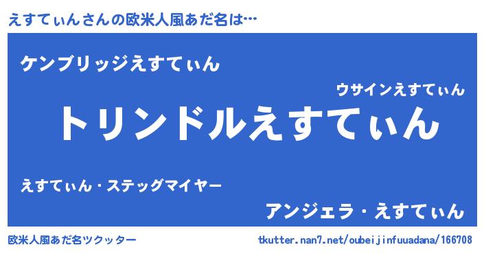 | 女子向けラノベタイトル風あだ名 | 『えすてぃんの玉の輿計画!』 |