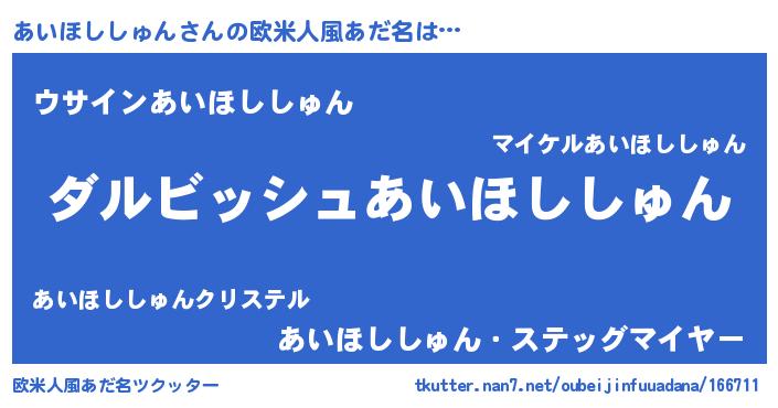 | ヘコむあだ名 | 『あいほししゅん(笑)』『あい太郎』 |