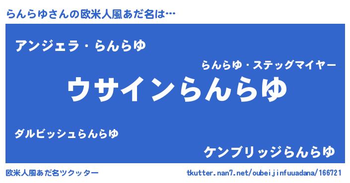 | ヘコむあだ名 | 『らんぷりん』『らんらゆ(笑)』 |