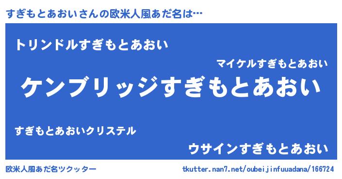| 男性向けラノベタイトル風あだ名 | 『Re:すぎもとあおいから始める異世界生活』 |