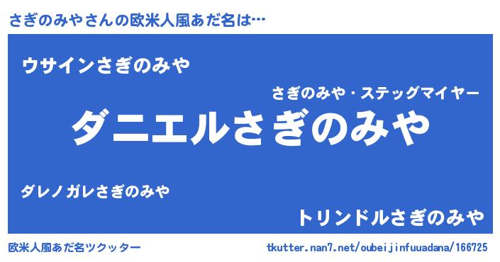 | 男性向けラノベタイトル風あだ名 | 『ノーゲーム・ノーサギノミヤ』 |