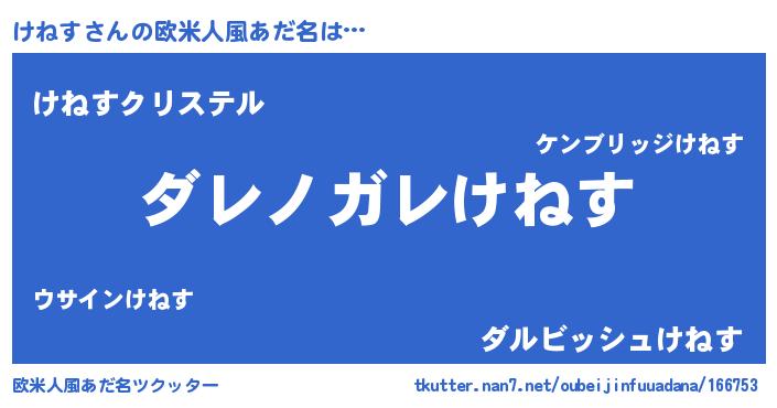 | 意味不明あだ名 | 『住所不定無職けねす(4歳)』『自称けねす』 |