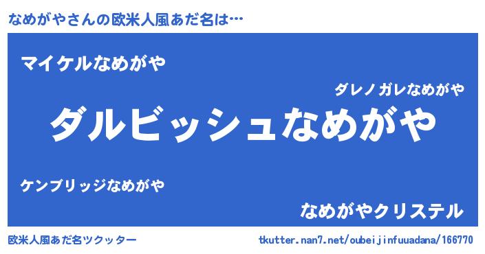 | ヘコむあだ名 | 『なめがや(小並感)』『なめにゅー』 |