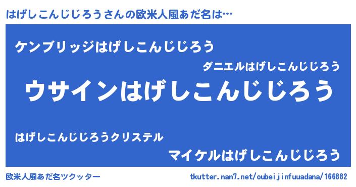 | 男性向けラノベタイトル風あだ名 | 『はげしこんじじろうの嫁は女の子じゃないと思った?』 |