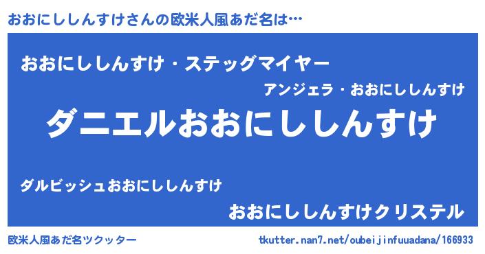 | 男性向けラノベタイトル風あだ名 | 『ノーゲーム・ノーオオニシシンスケ』 |