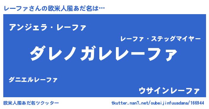 | 意味不明あだ名 | 『住所不定無職レーファ(98歳)』 |