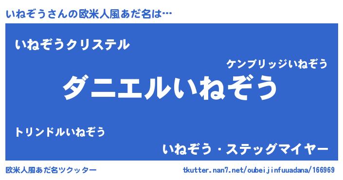 | 女子向けラノベタイトル風あだ名 | 『死神いねぞうの再婚』『闇のいねぞう』 |