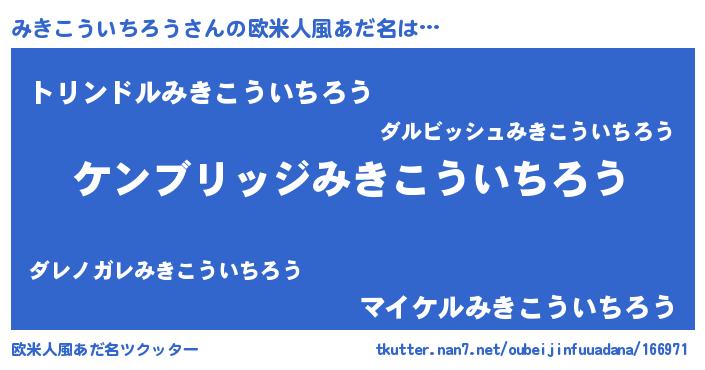 | ヘコむあだ名 | 『みきにー』『みきこういちろう(小並感)』 |