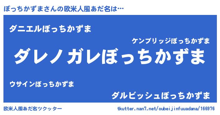 | ヘコむあだ名 | 『ぼっちかずま(笑)』『ぼっっ子』 |