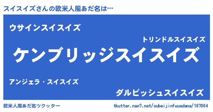 | 意味不明あだ名 | 『自称スイスイズ』『永久保存スイスイズ』 |