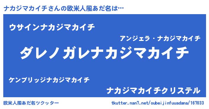 | 男性向けラノベタイトル風あだ名 | 『この素晴らしい世界にナカジマカイチを!』 |