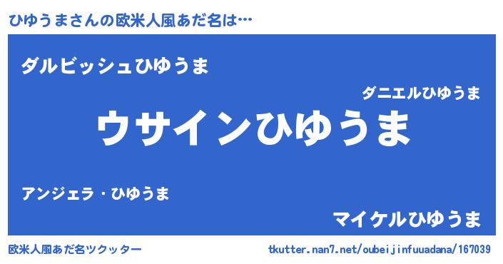 | 男性向けラノベタイトル風あだ名 | 『ひゆうまの嫁は女の子じゃないと思った?』 |