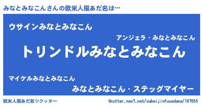 | 男性向けラノベタイトル風あだ名 | 『転生したらみなとみなこんだった件』 |