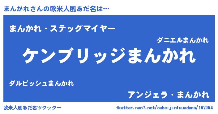 | 意味不明あだ名 | 『自称まんかれ』『永久保存まんかれ』 |