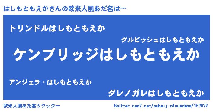 | ヘコむあだ名 | 『はしもともえか(笑)』『はしっぺ』 |