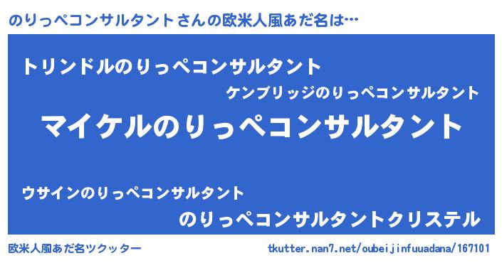 | 男性向けラノベタイトル風あだ名 | 『のりっぺコンサルタントの憂鬱』 |