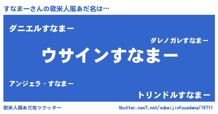 | 男性向けラノベタイトル風あだ名 | 『すなまーの嫁は女の子じゃないと思った?』 |