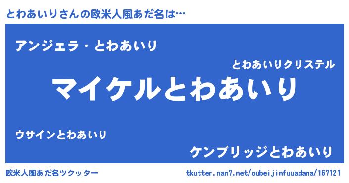 | 胡散臭い通販商品みたいなあだ名 | 『億万長者になれる水晶球…その名も「とわあいり」』 |