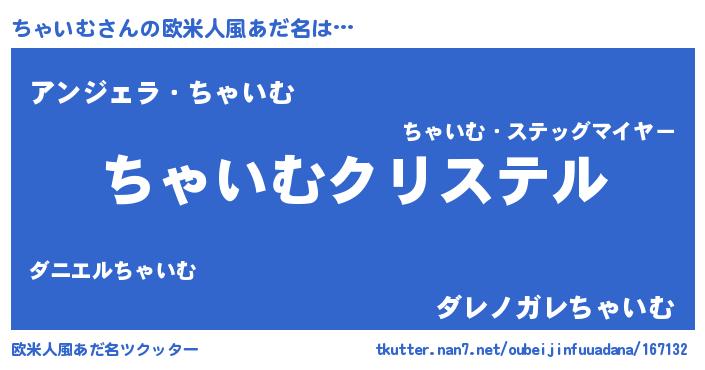| 意味不明あだ名 | 『ちゃいむフォーエバー』 |