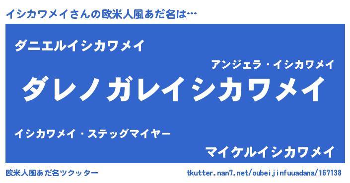 | ヒーロー風カッコイイあだ名 | 『仮面イシダー』『スーパーイシカワメイ』 |