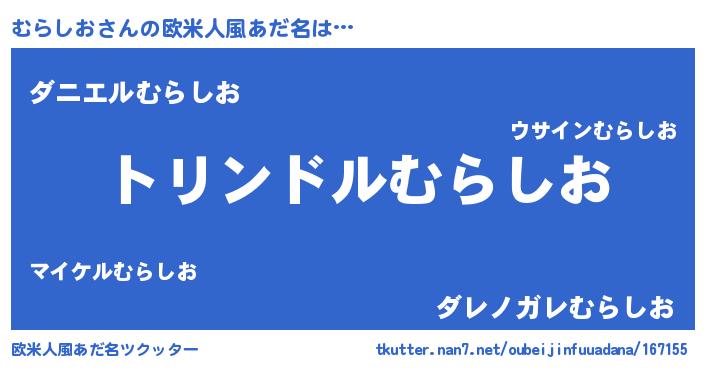 | 男性向けラノベタイトル風あだ名 | 『転生したらむらしおだった件』 |