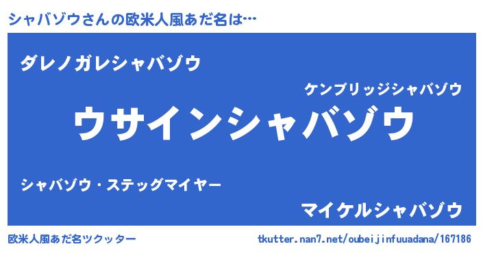 | 男性向けラノベタイトル風あだ名 | 『シャバゾウの嫁は女の子じゃないと思った?』 |