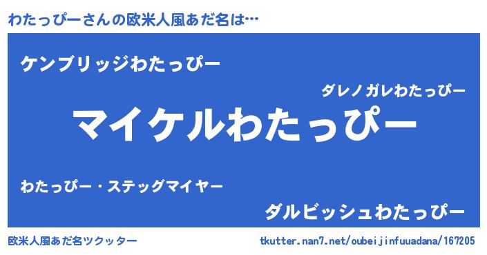 | 男性向けラノベタイトル風あだ名 | 『ワタッピーアートオンライン』 |