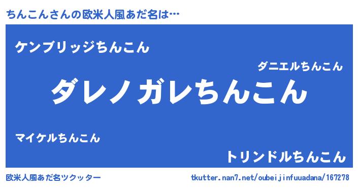 | 女子向けラノベタイトル風あだ名 | 『ちんこんが死なない童話 林檎のちんこんの診療簿』 |